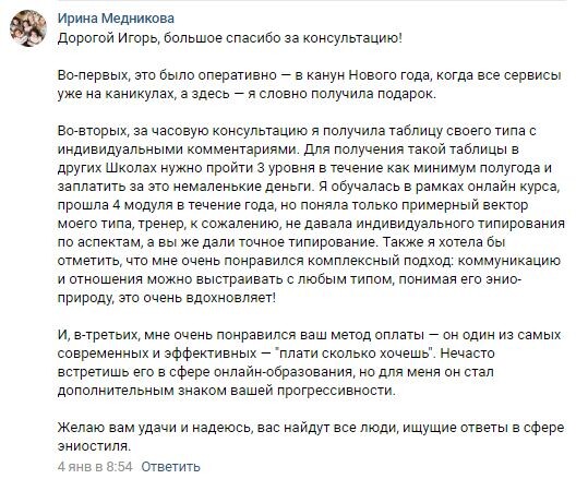 - Вы хотите найти свое предназначение. Уточнив на консультации ваш эниотип, я подскажу вам пути вашего развития.